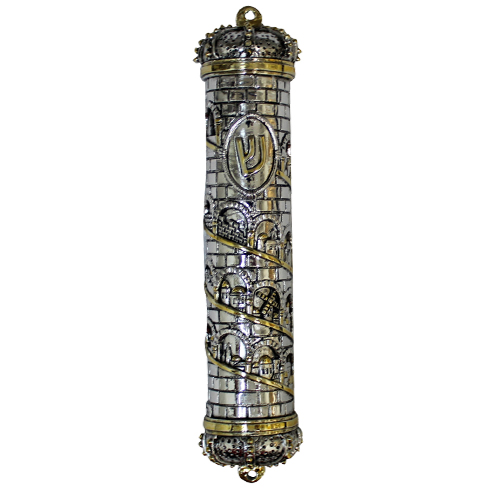 20229 Mezouza Polyrésine Argentée Et Dorée 12 Cm – “Couronne De Jérusalem”