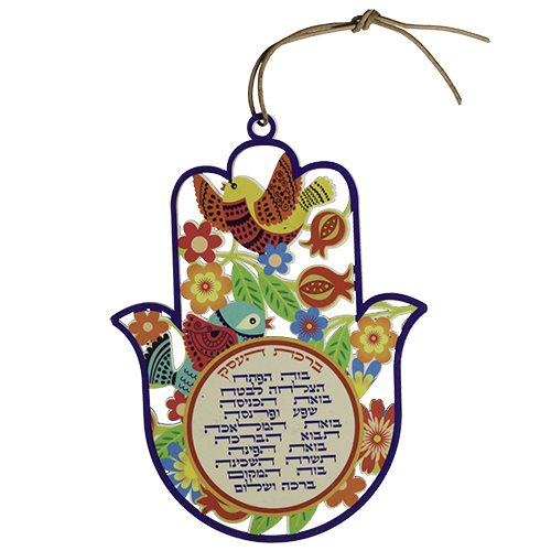 Hamsa Multicolore Bénédiction D’Affaires Hébraïque – ” Oiseaux Et Fleurs ” 17 Cm